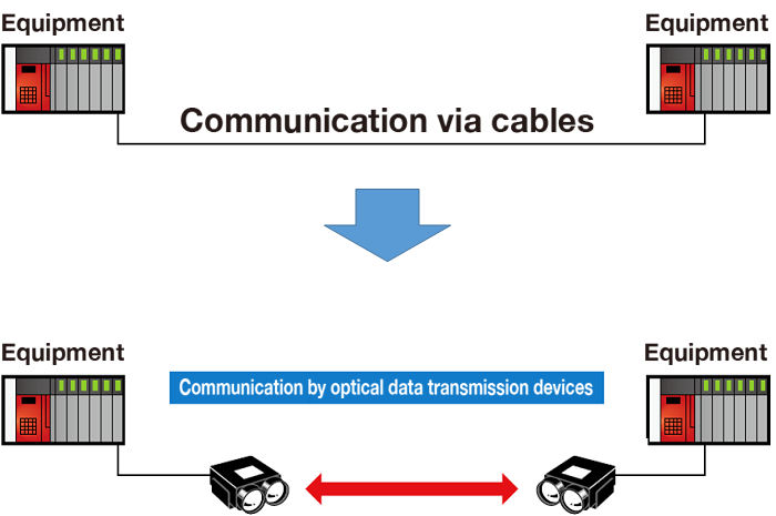 Mechanism and utilization of Optical data transmission device for AGV (automated guided vehicle) / AMR (transport robot)